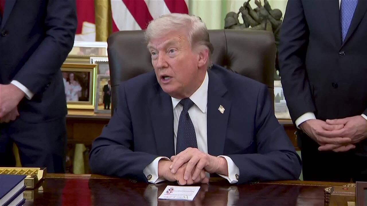 Trump: "Não gostamos quando eles têm como alvo empresas americanas. Porque basicamente você está falando sobre nossas grandes empresas americanas e, quer gostemos delas ou não, elas são empresas americanas e são as principais empresas do mundo. E estamos olhando para isso. Nós estivemos olhando para isso. O Reino Unido fez algumas outras pessoas. Eles acham que vão ganhar dinheiro fácil. É por isso que todos se aproveitaram do nosso país. Eles não aproveitam isso. Estamos analisando isso e podemos resolver isso facilmente, simplesmente colocando uma grande tarifa sobre o Reino Unido. Então é melhor eles tomarem cuidado. Se eles não reduzirem o imposto, provavelmente imporão uma grande tarifa ao Reino Unido."