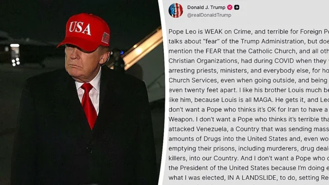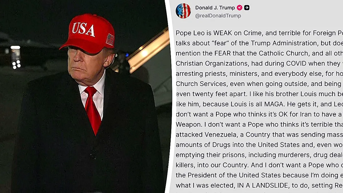 O presidente Donald Trump chamou o Papa Leão XIV de “pessoa muito liberal” durante uma breve parada na Base Conjunta Andrews, em Maryland, em 12 de abril, e disse que “não é um fã”. O Papa Leão continua a criticar publicamente Trump pelas ações dos EUA no Irão, na Venezuela, na posição do presidente sobre a imigração e outras questões.