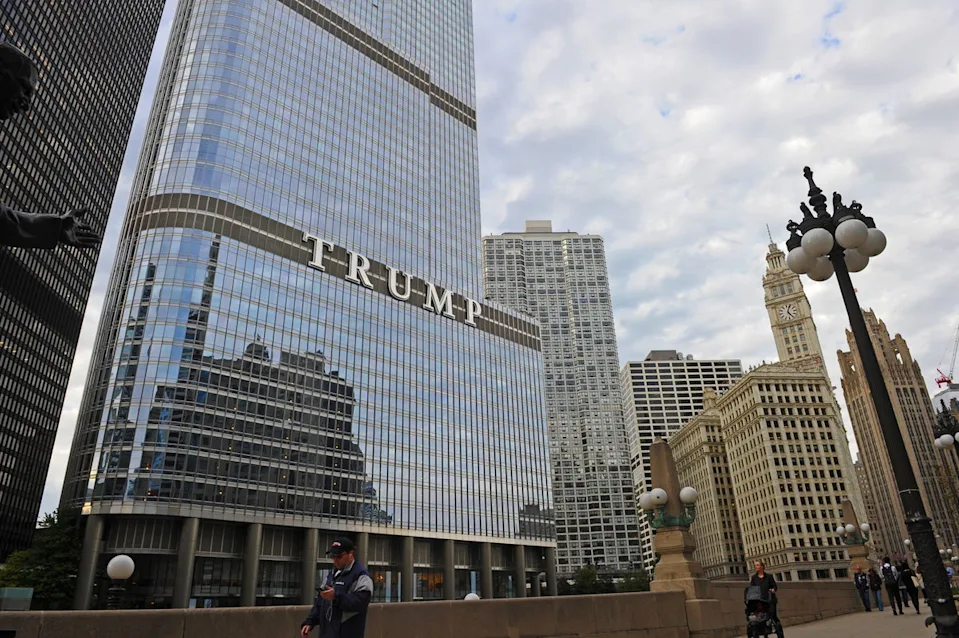 Donald Trump compartilhou na segunda-feira um vídeo revelando o design de sua planejada biblioteca presidencial, que reflete de perto a aparência dos empreendimentos comerciais existentes de Trump, como a Trump Tower em Chicago (AFP via Getty Images)