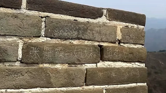 Duas turistas foram presas depois que uma delas foi filmada gravando uma mensagem na seção Badaling da Grande Muralha da China, em Pequim, em 23 de março, com uma tesoura. Infelizmente, o vandalismo é comum nesta secção da Grande Muralha, com várias esculturas visíveis nas pedras antigas da área.