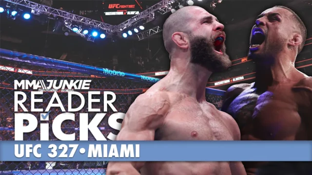 Queremos suas previsões para o UFC 327. Nosso recurso de seleção da equipe inclui as escolhas de consenso dos leitores do MMA Junkie. Basta votar em cada luta abaixo e usaremos as contagens oficiais registradas até sexta-feira ao meio-dia ET (9h PT).
