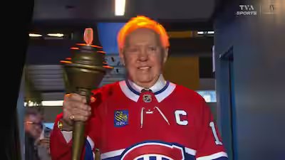 O lendário Yvan Cournoyer aparece nos gradins, portando o flambeau bem alto, enquanto os espectadores, comblés e excitados, fazem com que deixem os guardanapos brancos girarem.