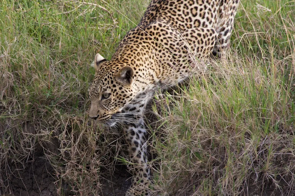 No Masai Mara Reserva Nacional, uma fêmea de leopardo está a caminho do rio, seguida por seu brincalhão filhote de quatro meses, com a intenção de aperfeiçoar sua técnica de agachar e atacar tudo, desde borboletas até sua mãe. Atrás deles, os restos de uma impala balançam em uma acácia. “Ela teve uma boa noite de caça e festa, mas agora eles precisam beber”, explica Francis Siamon, meu guia de conservação das Grandes Planícies. Este é um encontro extraordinário com a vida selvagem, não só porque é raro ver um leopardo com filhote tão ativo durante o dia, mas também porque há apenas um outro veículo por perto. Ficamos por uma hora, fascinados pela rara companhia desses gatos normalmente esquivos, além de outros intrusos: uma multidão de mangustos listrados que ficam nas patas traseiras com narizes trêmulos, e um javali com pressa, uma trilha de jovens réplicas em seus calcanhares.