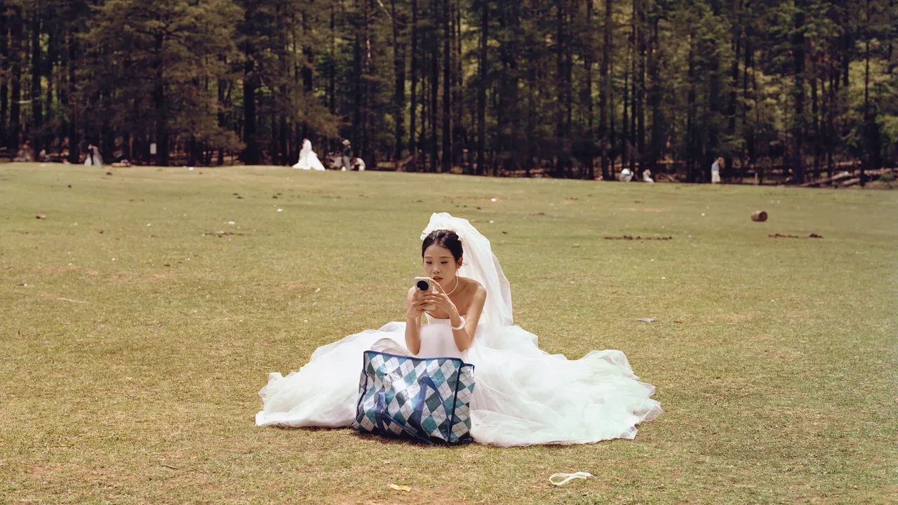 Na maior parte da subida da Montanha de Neve do Dragão de Jade, que atinge uma altura de mais de 5.500 metros, na província de Yunnan, no sudoeste da China, há um grande campo alpino chamado Yunshanping, ou Spruce Meadow, onde os turistas se reúnem para tirar fotografias. Muitos dos visitantes são casais prestes a se casar. Eles usam roupas tradicionais de casamento ocidentais, a noiva de branco e o noivo de preto, e muitas vezes são acompanhados por uma equipe de várias pessoas. São fotógrafos e assistentes de iluminação e maquiadores, com cada conjunto de profissionais agrupados em torno do casal. Em outubro de 2024, quando a fotógrafa britânica Catherine Hyland viajou pela primeira vez para Spruce Meadow, ela passou um dia documentando a cena. “Eu me vi cercada por centenas e centenas de noivas e noivos”, ela me disse. “Foi a primeira vez que vi tantas noivas em um só lugar.”