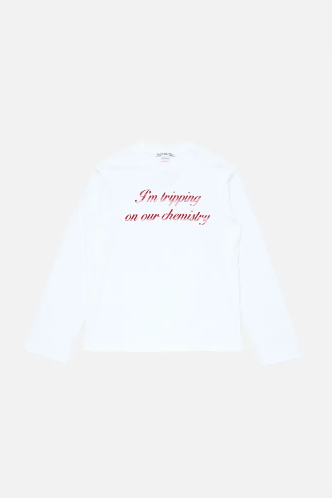 Acne Studios também lançou uma colaboração de edição limitada de camisetas com Robyn, inspirada na letra do último single da cantora, “Dopamine”. Robyn cantou a música ao vivo pela primeira vez durante um show de apenas uma noite do Spotify x Acne Studios no Fonda Theatre de Los Angeles em novembro. A camiseta é feita de uma mistura de algodão e cânhamo com um corte descontraído e acabamento desgastado, e apresenta as palavras “Estou tropeçando em nossa química” exibidas na frente em um efeito estilo tinta spray vermelha. Um selo vermelho da Acne Studios e Spotify adorna o decote traseiro.