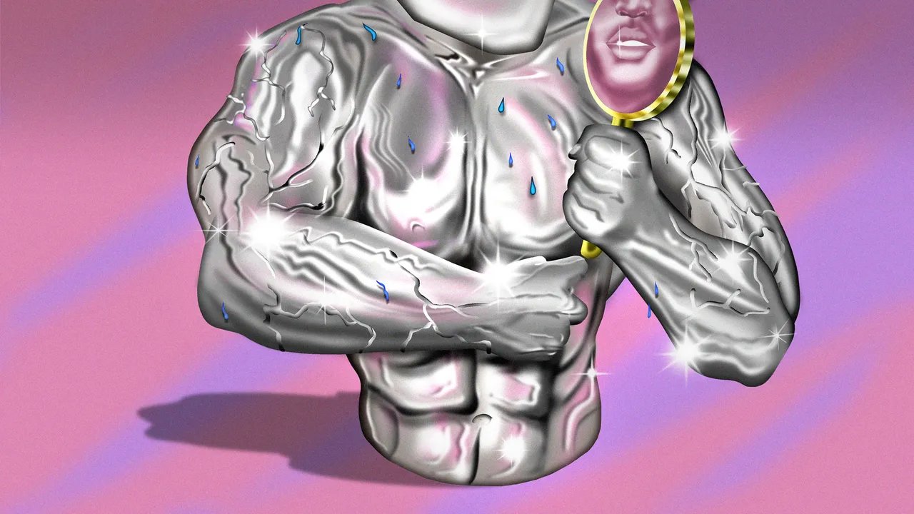 Mas as medidas drásticas que os looksmaxxers estão dispostos a tomar são letais para um dos seus próprios mitos fundamentais – o mito da beleza natural. Se nossos destinos estivessem inscritos em nossa genética, por que alguém se preocuparia em manter uma rotina de cuidados com a pele e muito menos se daria ao trabalho de enfiar a língua no topo da boca ou de se bater com um martelo? “Ser natural é ruim”, declarou um looksmaxxer corpulento que se autodenomina Androgênico, sem rodeios, em um vídeo sobre as delícias do abuso de esteróides. A partir dessa percepção, basta um pequeno passo para chegar à conclusão de que ser natural não é possível. Beber quinhentos gramas de açúcar por dia, por mais equivocado que seja, é uma admissão tácita de que não existe um corpo natural, que simplesmente viver é moldar ativamente a nossa aparência, que somos todos artefatos daquilo que injetamos e bebemos.