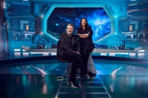 Charlie Brooker e Jessica Rhoades no set de ‘Black Mirror’.