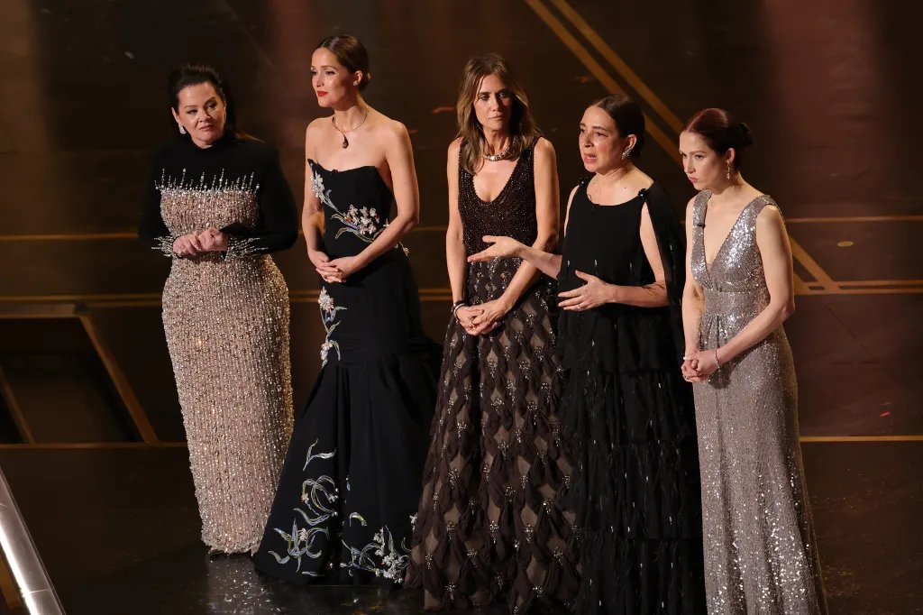 Kristen Wiig, May Rudolph, Rose Byrne, Melissa McCarthy e Ellie Kemper se reuniram na Maior Noite de Hollywood para comemorar o 15º aniversário do filme dirigido por Paul Feig, que estreou em 2011. Além disso, Wiig, Rudloph, McCarthy e Kemper estão lá para torcer por Byrne, que está concorrendo na categoria Melhor Atriz por sua atuação em Se eu tivesse pernas, eu te chutaria.