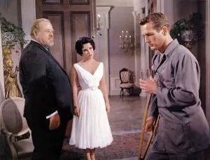 Burl Ives, Elizabeth Taylor e Paul Newman no filme ‘Gato em Teto de Zinco Quente’ de 1958