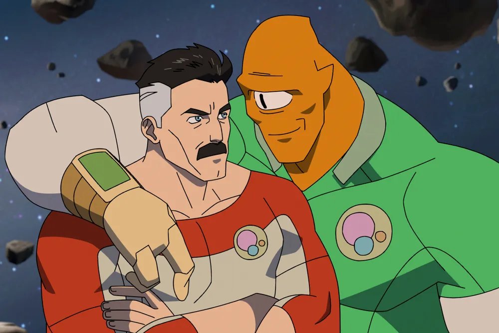 O episódio 1 da estreia em três partes incluiu um breve flashback de Nolan começando como Omni-Man em sua primeira prova de fantasia com Debbie (Sandra Oh), mas o episódio 2 acelerou as coisas. Tudo começou com uma longa retrospectiva do adolescente Nolan ensinando às crianças Viltrumites os costumes violentos de sua cultura. Então, os pais de Nolan testaram suas habilidades de luta com uma surra brutal, mas as coisas rapidamente mudam quando os Viltrumitas de todo o planeta começam a tossir sangue. A raça de alienígenas poderosos é dizimada pelo vírus Scourge, que mata 99,9% de seu mundo – exceto Nolan, o Grande Regente Thragg (Lee Pace) e alguns outros. Numa sequência arrepiante, os sobreviventes descartam os cadáveres para criar anéis ao redor do planeta. O resto do episódio remonta aos dias atuais, onde Nolan, Allen (Seth Rogen), Telia (Tatiana Maslany) e sua tripulação inspirada em “Star Trek” procuram pela galáxia maneiras de matar os Viltrumites restantes.