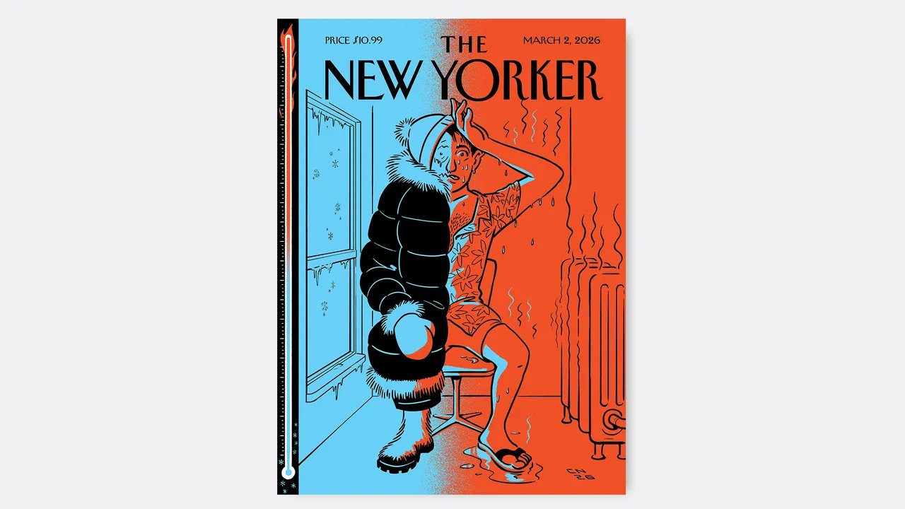 À luz das temperaturas geladas que a Costa Leste tem experimentado recentemente, o artista Christoph Niemann decidiu ilustrar, para a capa da edição de 2 de março de 2026, uma fonte adicional de desconforto invernal para muitos nova-iorquinos. “Qualquer temperatura ao norte ou ao sul de setenta e dois graus me joga num abismo de autopiedade”, disse Niemann. “Para pessoas como eu, um apartamento superaquecido na cidade no inverno é o pior lugar imaginável.”