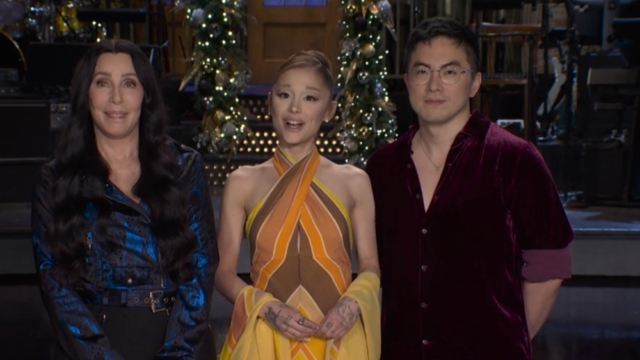 A NBC postou uma promoção do episódio com Grande, Cher e Yang na quinta-feira. “Ariana, estou tão feliz que você está aqui”, Yang diz ao seu colega de elenco de “Wicked”. “E estou muito feliz por estar de volta!” ela responde.