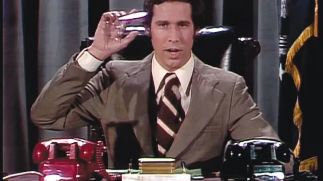Parecia, na época, uma atitude bastante contemporânea em sua crueldade. Mas o senso de humor de Chase se baseava, na verdade, em algo que teve suas raízes na década de 1960. Na época, chamava-se a colocação. Você diz algo, você não está falando sério (exceto que talvez, no fundo, você esteja falando sério), e é tudo um ato de agressão velada, porque você está enganando o Homem, ou alguém de quem você não gosta, ou uma pessoa com quem não merece uma conversa franca. Mas Chase aumentou a encenação de duas maneiras. Ele tornou tudo louco e surreal e, ao contrário de Bill Murray, que tinha uma afetuosa desgrenhada contracultura, Chase despiu qualquer vestígio de moralidade sócio-política. Ele estava fingindo só porque…ele queria foder com você. E isso se tornou toda a sua personalidade.