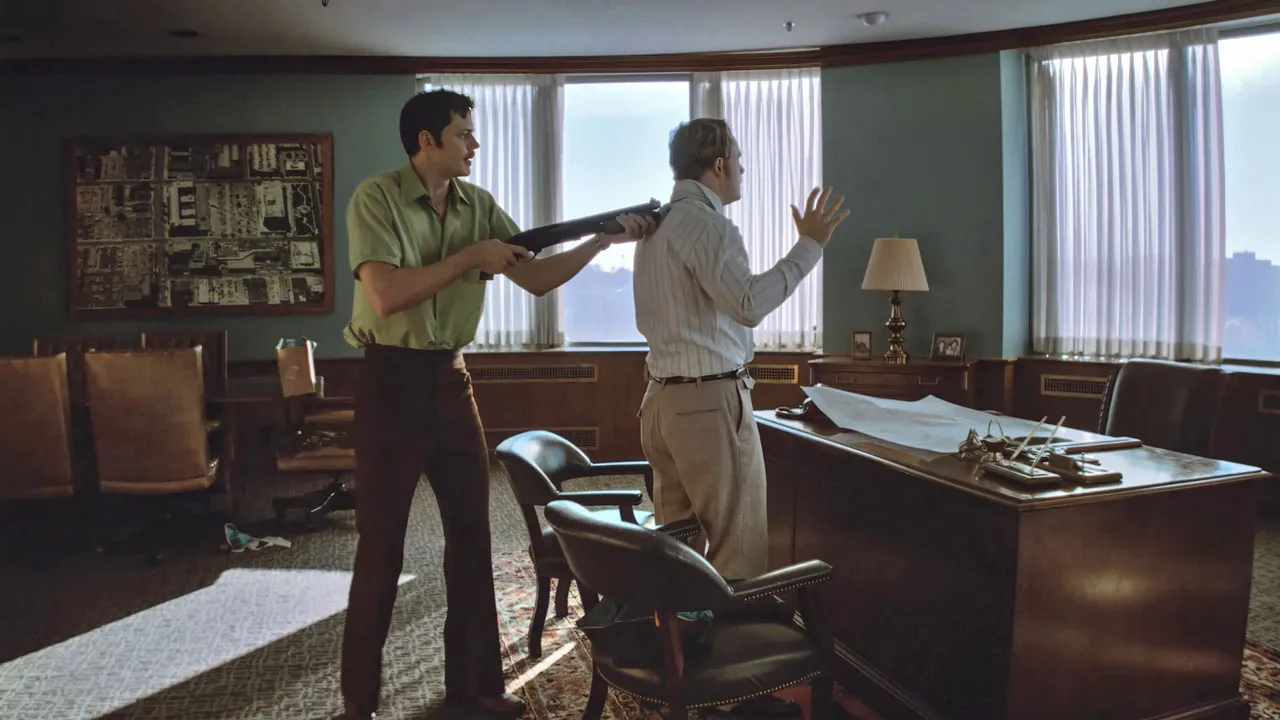 Crime e insanidade se misturam em negligência e crueldade. Existem ações tão destrutivas, ou autodestrutivas, que fazem com que os perpetradores pareçam inerentemente delirantes – por mais racionalmente que essas ações tenham sido planeadas e executadas. Mas e quanto ao seu princípio motivador? Esse é o paradoxo central de “Dead Man’s Wire”: se a visão preconceituosa de Tony sobre os negócios da Meridian e a sociedade em geral é bem fundamentada ou também delirante. Van Sant faz o possível para contornar o problema, mas deixa a fratura bem visível no final do filme, quando mostra clipes do Tony Kiritsis da vida real do evento real. Nascido em 1932, Kiritsis parece todos os dias dos seus quarenta e quatro anos — grosso e com queixo, com costeletas estranhamente pontiagudas, sugerindo uma quadratura terminal — e seu olhar, de olhos arregalados, parece possuído. (O filme de Van Sant é baseado em parte em um documentário de 2018, “Dead Man’s Line”, de Alan Berry e Mark Enochs, que são consultores do novo filme.) Não é preciso mais do que uma olhada no Kiritsis da vida real, ou ouvir sua voz em uma fita de rádio da vida real, para reconhecer um perpetrador que está preso em um mundo interior próprio. (Enquanto isso, o apresentador de rádio da vida real, Fred Heckman, é franco e folclórico, nada moderno ou suave.) Ao tornar Tony mais jovem e mais perspicaz, com olhos brilhantes e mais calmo, Van Sant tenta sanewash Tony na medida do possível; o efeito é empurrar a queixa do protagonista para a legitimidade e generalizá-la como frustração face à autoridade corporativa desumana e desenfreada. Uma cutucada um pouco mais firme e “Dead Man’s Wire” teria sido um filme de Mangione.