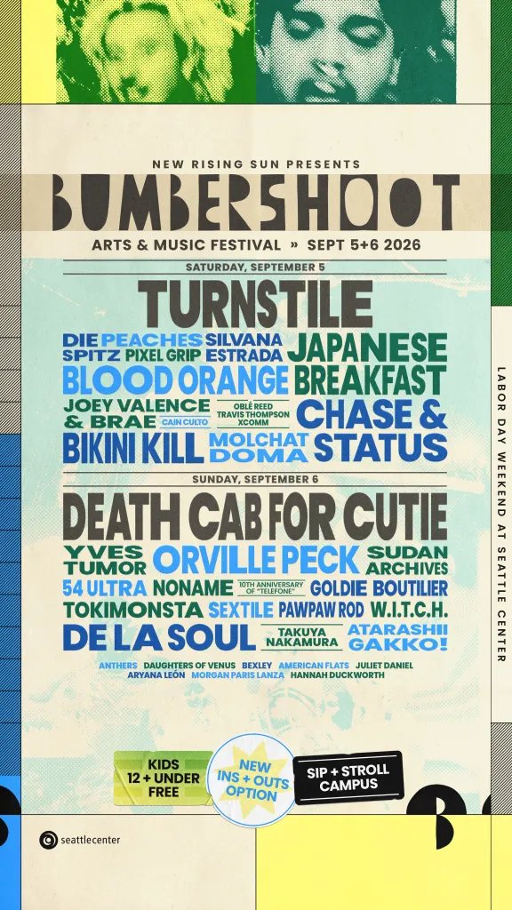 Death Cab for Cutie, Turnstile e Japanese Breakfast são apenas alguns dos artistas programados para se apresentar no Bumbershoot Arts & Music Festival, que acontece de 5 a 6 de setembro no Seattle Center de Seattle.