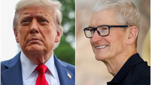 Trump também disse que o executivo de tecnologia uma vez ligou para ele durante seu primeiro mandato para pedir ajuda em um assunto não especificado – e Trump disse que sua reação foi: “Fiquei muito impressionado comigo mesmo por ter o chefe da Apple ligando para ‘beijar minha bunda’”.