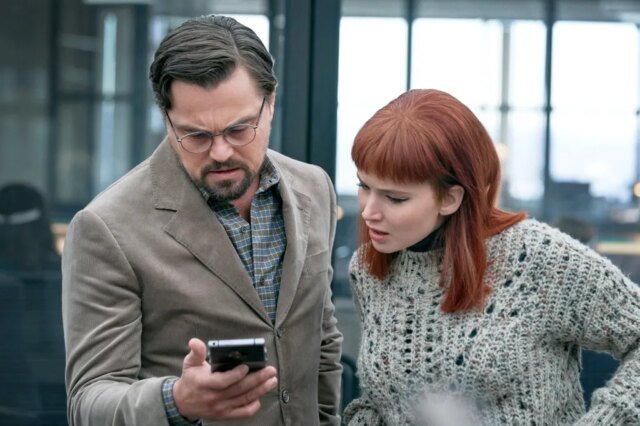 Leonardo DiCaprio e Jennifer Lawrence em “Don’t Look Up” (Netflix /Cortesia Coleção Everett)