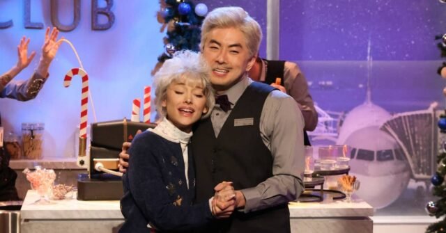 O ator e apresentador de podcast de 35 anos ficou visivelmente emocionado durante seu esboço final, no qual interpretou um funcionário do Delta One Lounge com uma máquina de gemada quebrada ao lado da apresentadora do episódio, Ariana Grande, e da convidada musical Cher.