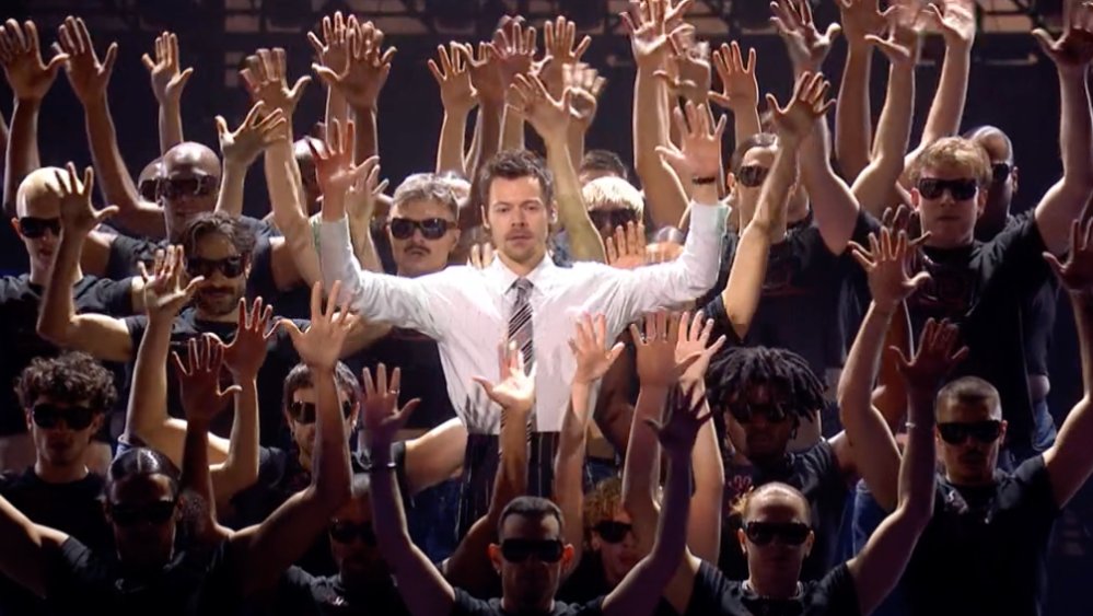 Styles então começou a estreia ao vivo de “Aperture” em uma arquibancada, ladeado por dezenas de dançarinos vestindo óculos escuros e camisetas com caracóis. A cantora, vestida com calça social de cintura alta e camisa com gravata, liderou a coreografia antes de desfilar pelo palco para se juntar a uma banda de apoio e cantores gospel. Seus dançarinos então se juntaram a ele no meio do local para um final, cercando-o enquanto agitavam as mãos em conjunto.
