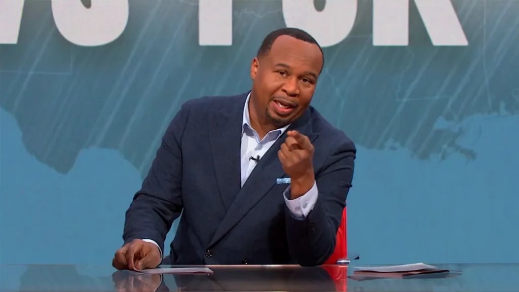 As estrelas que apareceram no painel, que apresenta versões cômicas das notícias políticas da semana, incluem Jasmine Crockett, Adam Kinzinger, Joy Reid, Kara Swisher, Alex Edelman, Bomani Jones, Lewis Black, Paula Poundstone, Mae Martin, Gianmarco Soresi e Jenny Hagel.
