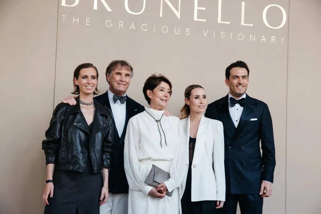 Toda a família Cucinelli – incluindo suas filhas Camilla Cucinelli, vice-presidente e codiretora da equipe de estilo feminino da empresa e Carolina Cucinelli, vice-presidente e codiretora criativa da empresa – também estiveram presentes. “É um legado que meu pai quer deixar para o resto do mundo”, disse Camilla sobre o propósito do filme para a família. “É importante que as pessoas entendam um pouco sobre a visão da nossa empresa, a filosofia da marca.”