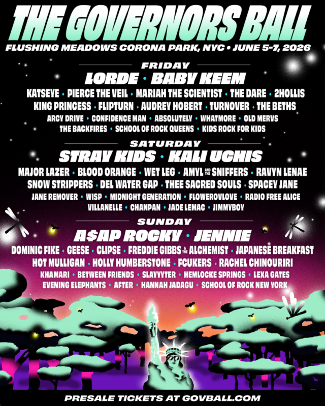 Lorde, Stray Kids e A$AP Rocky serão as atrações principais da edição de 2026 do Governors Ball, o festival de música exclusivo da cidade de Nova York. Gov Ball retornará ao Flushing Meadows Corona Park, no Queens, de 5 a 7 de junho, coincidindo com o Mês da Música de Nova York.