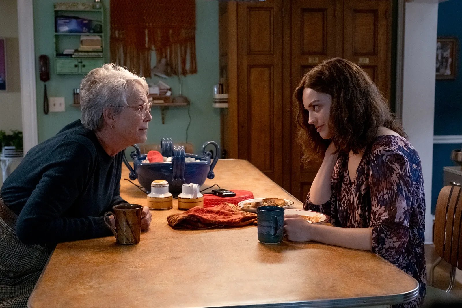 Jamie Lee Curtis e Emma Mackey em “Ella McCay”.Fotografia de Claire Folger / Cortesia © 2025 20th Century Studios