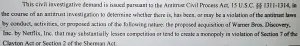 “Esta demanda de investigação civil é emitida de acordo com a Lei de Processo Civil Antitruste… no curso de uma investigação antitruste para determinar se há, houve ou pode haver uma violação das leis antitruste por conduta, atividades ou ação proposta da seguinte natureza: a proposta de aquisição da Warner Bros. O chefe interino da Divisão Antitruste, Omeed Assefi (que há pouco mais de uma semana substituiu Abigail Slater, que saiu repentinamente), declarou em uma salva enviada nas últimas 48 horas a cineastas e produtores de toda a cidade.