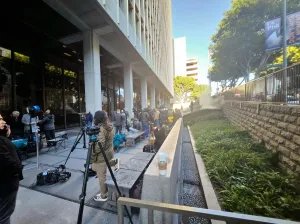 Do lado de fora do tribunal criminal em DTLA na quarta-feira, esperando uma conferência de imprensa pós-audiência de Jackson, havia uma legião de meios de comunicação e uma parede de câmeras no que se prevê ser um dos casos mais cobertos dos últimos anos – em uma cidade que tem visto uma infinidade de tais julgamentos.