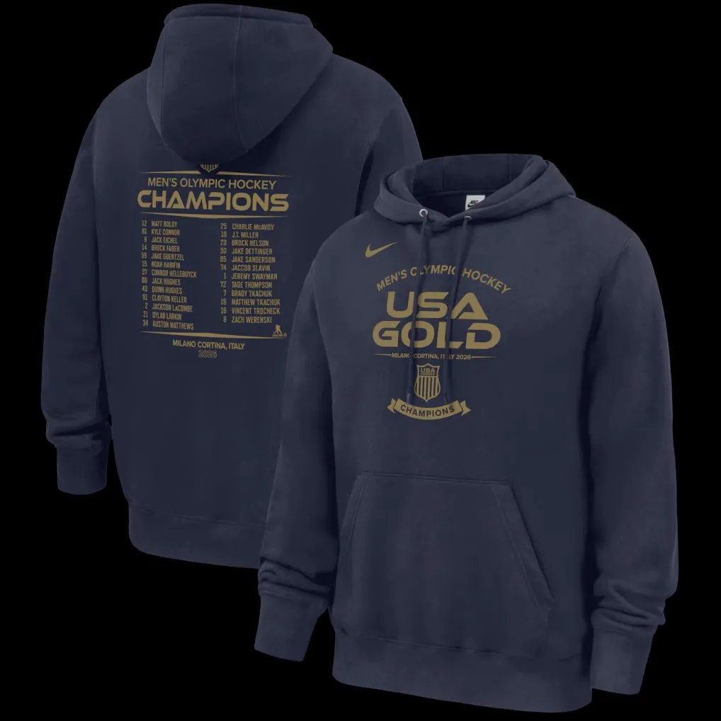 EUA Hóquei Nike Unissex 2026 Jogos Olímpicos de Inverno Medalha de Ouro Fleece Hoodie