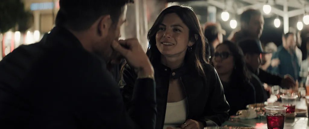 Monica Barbaro no Lia’s Tacos em “Crime 101”.