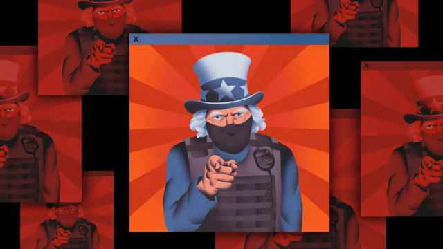 O governo dos EUA, é claro, nunca foi tímido quanto aos seus gastos em publicidade de defesa. Em 2023, o orçamento total de publicidade do Departamento de Defesa foi de 1,1 mil milhões de dólares, sendo a maior parte dos fundos direcionada para esforços de recrutamento militar; em 2025, só o orçamento de publicidade do Exército ultrapassou um bilhão de dólares. Ainda assim, o que torna os gastos do DHS em GELO publicidade tão desorientadora não é apenas a forma como a agência está a ser rotulada como mais um ramo das forças armadas – uma organização de guerra doméstica decidida a erradicar uma força militante rival – mas também como transformou as redes sociais e a cultura digital em armas contra si própria, uma estratégia algo nova para um departamento governamental. Os apelos militares tradicionais à acção, por vezes combinados com tropos da supremacia branca, estão a ser implantados em muitos memes e imagens geradas por IA que o DHS e a Casa Branca publicam diariamente no TikTok, X e Instagram, como o Tio Sam acenando a potenciais recrutas para salvar o país, ou uma pintura do Destino Manifesto do século XIX com a legenda “Uma herança da qual se orgulhar, uma pátria que vale a pena defender”. As ansiedades em relação à fronteira não são novidade, mas foram embelezadas a níveis perigosos e perturbadores durante o segundo mandato de Trump. Declarar guerra aos imigrantes, muitos dos quais fogem da perseguição e da violência fomentadas pelo intervencionismo norte-americano do passado, requer uma narrativa poderosa e cegante, suficientemente forte para esconder a degradação e a desumanização que estão no cerne da mensagem. “A luz derrotará as trevas”, declarou Stephen Miller, vice-chefe de gabinete de Trump na Casa Branca, no serviço memorial de Charlie Kirk, em setembro. “Nós prevaleceremos sobre as forças da maldade e do mal. Eles não podem imaginar o que despertaram.” Proteja a pátria. Remova os invasores. Destrua os alienígenas. Os apitos dos cães transformaram-se em alarmes de incêndio.
