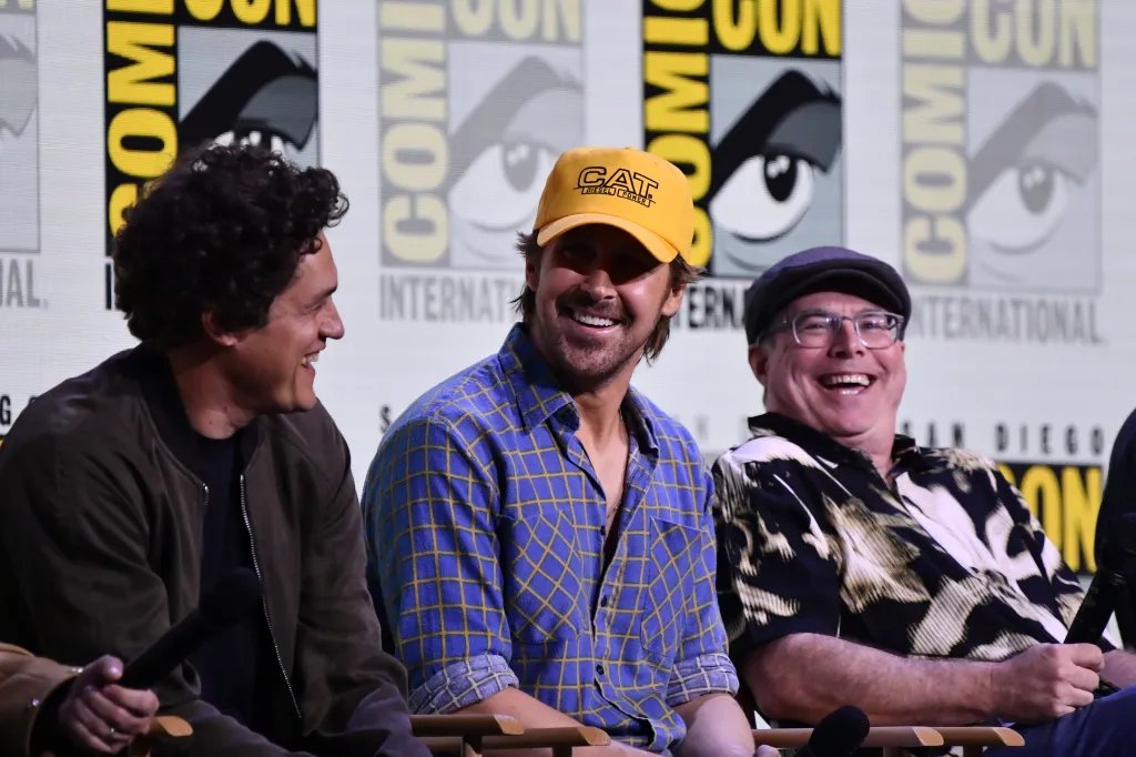 Por não ser uma marca de moda espalhafatosa, a adesão de Gosling à marca tem sido relativamente sutil. Mas se você olhar de perto, perceberá que a marca de roupas de trabalho tem sido um marco em seus maiores momentos na imprensa antes do lançamento do “Projeto Hail Mary”. Ele usou a calça Canvas e a jaqueta trucker combinando em um tom lavado “Overcast” para uma recriação atrevida de pôster “La La Land” e novamente em uma campanha para a marca de relógios de luxo TAG Heuer. O boné amarelo brilhante de cinco painéis, característico da marca, também fez aparições repetidas, aparecendo durante um painel da Comic Con no ano passado e um clipe agora viral dele arremessando uma bola de futebol através da placa do Randy’s Donuts. Enquanto isso, ele pegou uma versão preta de sua confiável jaqueta de caminhoneiro para as promoções do “Saturday Night Live”.