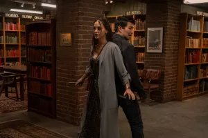 Melissa Barrera como Michelle e Simu Liu como Alexander em ‘The Copenhagen Test’