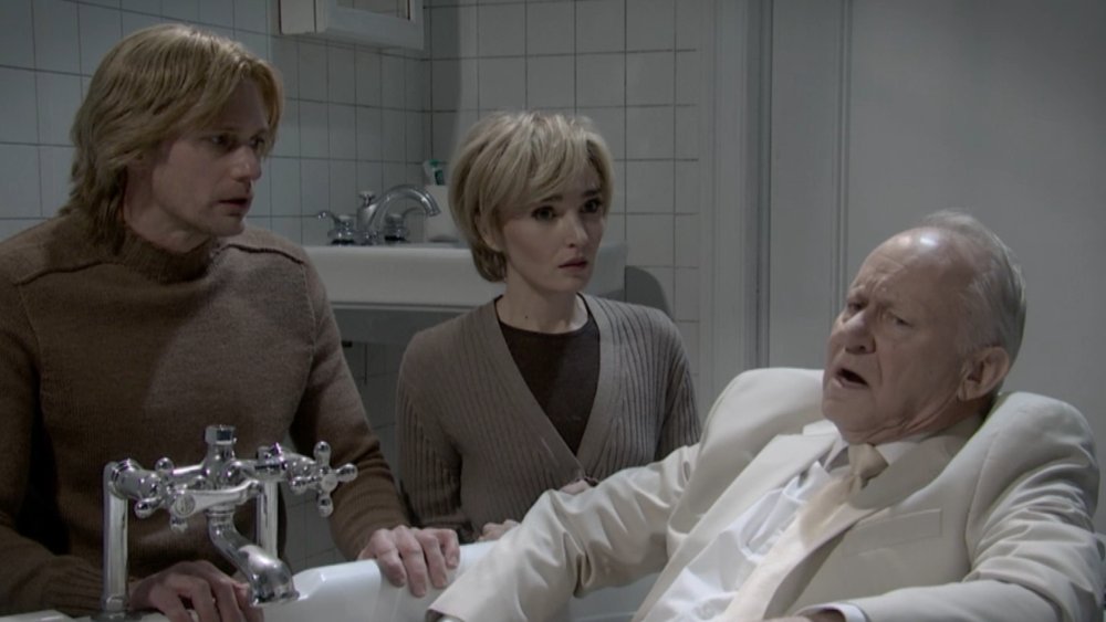 Stellan provou que joga contra sua imagem ali – e em um esboço que satiriza as práticas dos pais imigrantes, no qual Alexander interpreta um estóico finlandês, cuja única lembrança de afeto de seu pai foi tocar acidentalmente os joelhos em uma sauna. Ele foi acompanhado, no final do esboço, por seu pai na vida real, gritando “A vergonha é sua! Viva com isso!”