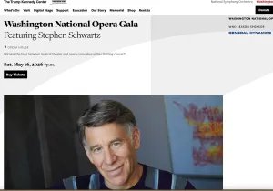 Mas no site do centro, o evento ainda estava dentro da programação, com acesso para compra de ingressos, e o logline: “Testemunhe as ligações entre o teatro musical e a ópera ganhando vida neste concerto emocionante! O aclamado letrista e compositor de teatro musical Stephen Schwartz é curador e apresentador por apenas uma noite, reunindo uma emocionante programação de solistas para apresentar um repertório adorado.”