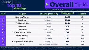 Apesar da concorrência acirrada, Paramount+ conseguiu fazer barulho com o terceiro episódio de Landman 2ª temporada, enquanto Netflix A Besta em Mim também rompeu. Landman ficou em segundo lugar com 1,34 bilhão de minutos visualizados, e A Besta em Mim ficou em terceiro lugar com 1,06 bilhão de minutos visualizados.