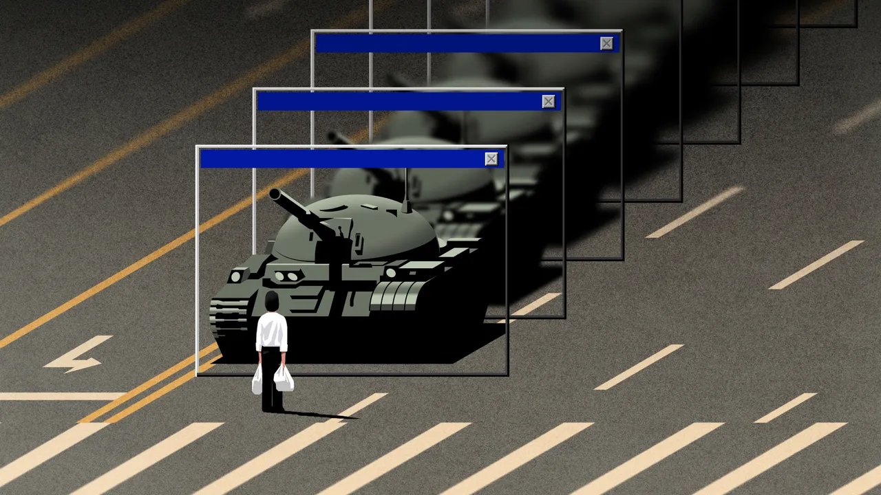 O drama destas histórias, nas quais quem está de dentro se torna estranho, é evidente; o deslocamento promete profunda confusão, conflito, descoberta e emaranhamento. O mesmo acontece com Lulu, que, após o encontro com o manifestante, fica obcecada pelo massacre da Praça Tiananmen e se matricula em um curso sobre o assunto. Não é uma aula fácil. Vendo fotos e documentos de pessoas esmagadas e visitando objetos ensanguentados recuperados do local e preservados no porão de uma biblioteca de Harvard, Lulu não tem mais dúvidas sobre os fatos. Ela direciona sua investigação para as intenções dos alunos. Ela considera que eram pacíficos e cumpridores da lei, defendendo o diálogo em vez de subverter o sistema político. (Depois de um retrato de Mao Zedong ter sido vandalizado, alguns até entregaram os culpados às autoridades.) Lulu sente-se especialmente atraída pela famosa fotografia do “Homem-Tanque”, que é visto por trás enquanto impede o avanço de uma coluna de carros blindados. Algo nesta imagem coloca seus sentimentos em contradição. Para os seus firmes amigos nacionalistas, ela defende ferozmente o seu lugar como símbolo global de resistência; ao mesmo tempo, ela não aguenta um cara branco com tainha e que exibe a foto com destaque em seu armário, como se fosse o pôster de uma estrela do rock.