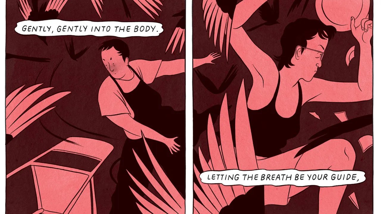 Eles se mudam para Montreal depois do ensino médio, onde cada um pode viver por conta própria. (Isso ainda é possível para cozinheiros e escritores daquela cidade.) O encontro marcado é um jantar e um filme – filmes de terror australianos como “Howling III: The Marsupials”, cujas cenas sangrentas Lai recria em vermelho. (O livro é principalmente em escala de cinza.) No sofá, no calor do verão, seus corpos pegajosos estão a centímetros de distância, enquanto suas almas vagam. Trish fala muito e fala por cima de Cannon. Mais tarde, ela pede para passar mais tempo juntos – mas apenas para explorar a vida de Cannon em busca de material literário. Lai desenha suas trocas como balões de fala em colisão. As palavras de Trish apagam as de Cannon, que escapam da página. Em outro lugar, a fita de meditação que Cannon ouve durante suas corridas reproduz uma rápida montagem de sua vida. “Afinal, os pensamentos podem ser invasivos e preocupantes”, entoa a voz, enquanto ela e seu avô comem em silêncio, um vampiro se prepara para matar e seus colegas de trabalho entram em pânico no restaurante. “Respiração consciente. . . inspirando. . . e expirando. . .” Acho esses balões de fala intrusivos mais barulhentos e mais eficazes para transmitir falhas de comunicação do que narrações na tela ou reticências e traços em um romance tradicional. Lai descreveu os quadrinhos como uma forma que “se situa entre a prosa e a produção cinematográfica”.