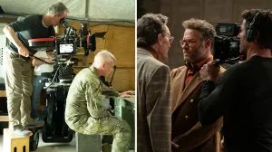 Colin Anderson no set ‘One Battle After Another, à esquerda. e Mark Goellnicht filmando um episódio de ‘The Studio’