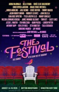 Anunciado hoje, o Festival acontecerá no histórico Hutton Brickyards de Kingston, ao longo da orla do Rio Hudson, de 14 a 1º de agosto, a cerca de duas horas de carro ao norte da cidade de Nova York. Idealizado pelos produtores Josh Saltman e David B. Schwartz, ex-colegas da The Walt Disney Company, como um “evento de destino”, o Festival tem uma lista de artistas da Broadway que atualmente inclui, além dos listados acima, Renée Elise Goldsberry, Brian Stokes Mitchell, Amber Ardolino, Julie Benko, Denée Benton, Tommy Bracco, Jason Robert Brown, Norbert Leo Butz, Jenn Colella, Cara Rose DiPietro, Tyler Joseph Ellis, Mandy Gonzalez, Tom Kitt, Lauren Patten, Seth Rudetsky, Ben Levi Ross, Talia Suskauer e Joy Woods, com mais a serem anunciados.