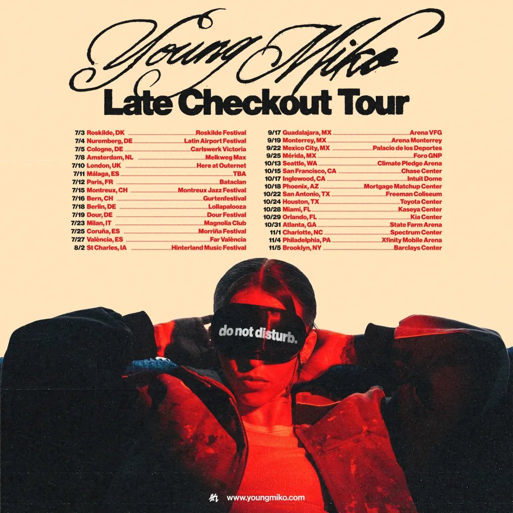 A rapper em ascensão Young Miko anunciou as datas de seu “Late Checkout”, com 31 datas em 11 países. Promovida pela Live Nation, a turnê começa em 3 de julho no Roskilde Festival, na Dinamarca, lançando um festival europeu antes de ela seguir para o México para uma grande temporada em setembro. A partir daí, ela encerrará o ano nos principais mercados dos EUA, incluindo Miami, Atlanta, Houston, Orlando, Nova York e Los Angeles. As datas completas aparecem abaixo.
