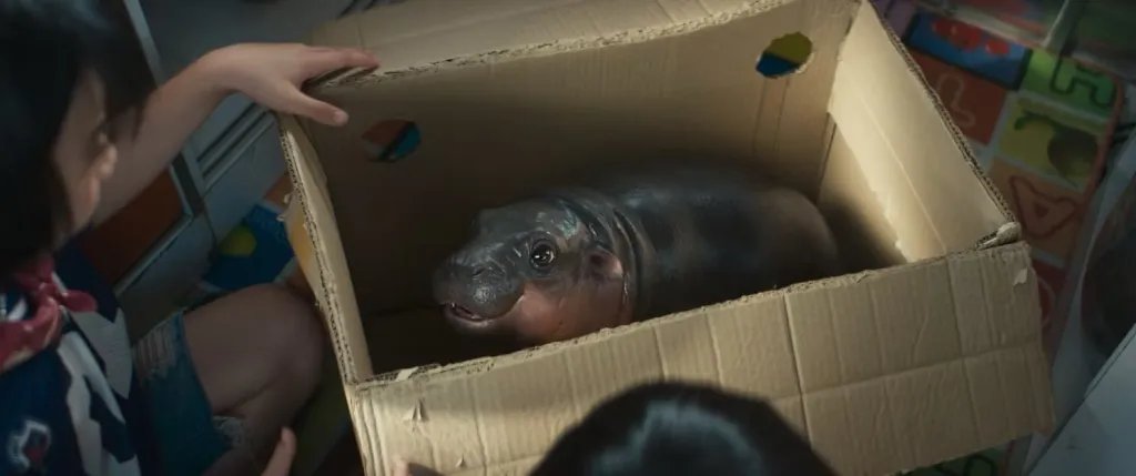 Moo Deng se esconde em uma caixa em “Food Truck: Stolen Love…and Moo Deng”.