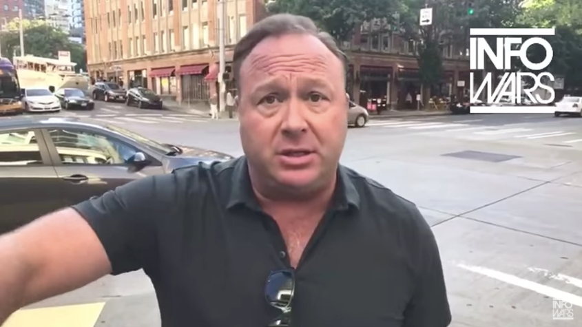 “Estou mudando a sociedade, não você!” grita o teórico da conspiração de extrema direita e criador do Infowars, Alex Jones, para um cidadão aleatório de Seattle que o importunou durante sua transmissão de notícias ao vivo.