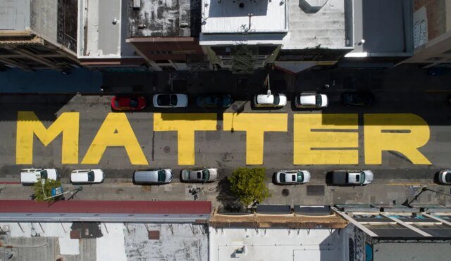 UMOs protestos de Washington contra o racismo, a brutalidade policial e a desigualdade racial varreram o país e o mundo após o assassinato de George Floyd, a prefeita de Washington, DC, Muriel Bowser, renomeou um trecho da rua diretamente em frente à Casa Branca como “Black Lives Matter Plaza”. Para marcar a mudança de nome, a rua foi pintada com a frase em letras amarelas gigantes que percorrem a rua movimentada. Agora, essas poderosas letras maiúsculas e a mensagem que elas carregam estão visíveis no Google Maps.