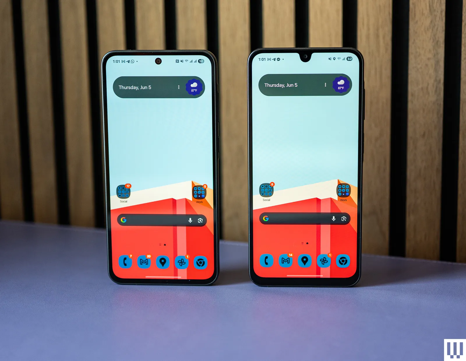 Samsung Galaxy A36 (esquerda) e Galaxy A26 (direita).