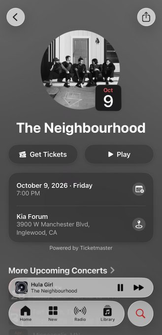 A integração com a Ticketmaster vem logo após o Spotify, um dos maiores rivais da Apple Music, se unir ao SeatGeek para que os fãs de música possam acessar links de ingressos ao navegar na página de um artista ou nas próximas datas da turnê.