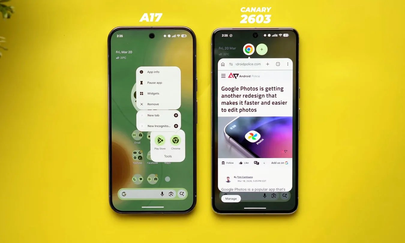 O que você está vendo aqui é o Android em um estado ativo de mudança, com ideias sendo testadas em público antes que as decisões sejam bloqueadas.