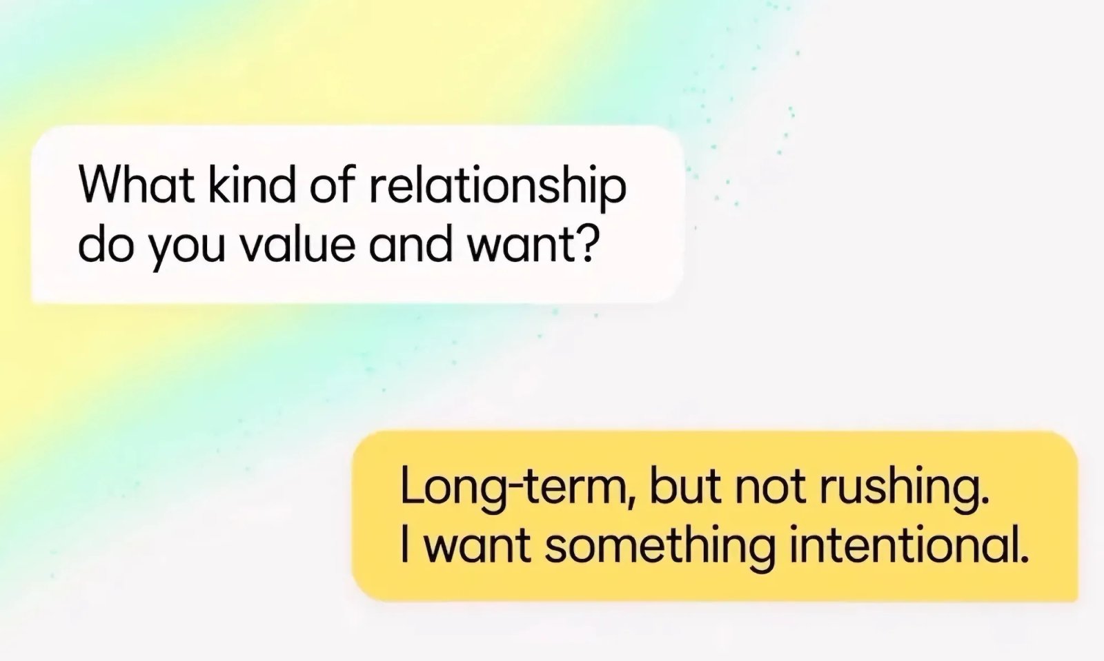Bee potencializa uma nova experiência de namoro chamada “Datas”. Quando você o usa pela primeira vez, Bee inicia uma conversa de integração para conhecê-lo. Em seguida, ele identifica outro usuário com valores e intenções compartilhados e notifica ambas as pessoas no aplicativo com uma descrição de por que eles podem ser uma ótima combinação.