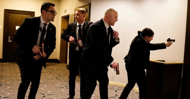 Testemunhas relataram ter ouvido vários tiros fora da sala, e os agentes rapidamente tiraram Trump e o vice-presidente JD Vance do palco. Um agente foi atingido, mas estava protegido por seu colete à prova de balas. Mais tarde, Trump disse aos repórteres que o agente saiu ileso.